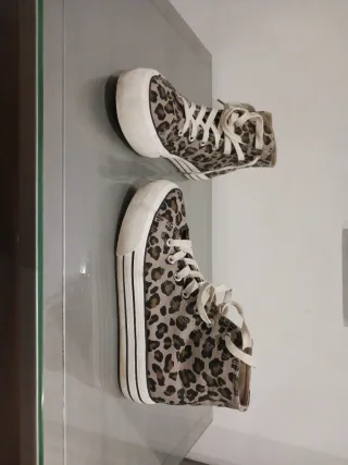 Zapatillas altas con un llamativo estampado de leopardo. Perfectas para añadir un toque salvaje a tu look. - Diseño de caña alta. - Cierre con cordones. - Suela de goma blanca.
