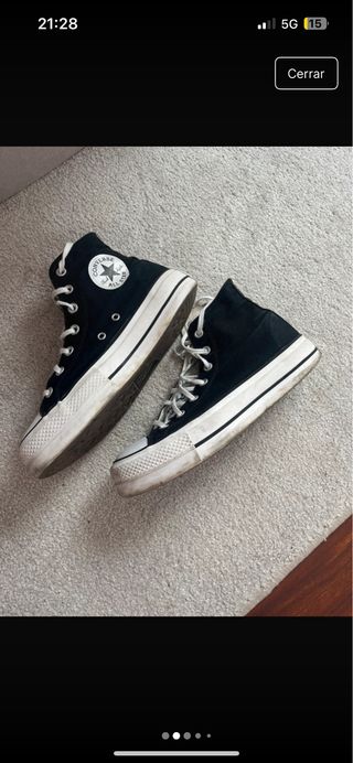 Zapatillas altas Converse Chuck Taylor con plataforma. - Color negro con detalles blancos. - Cordones blancos. - Suela de plataforma blanca. Tienen algo de desgaste en la suela, tal y como se ve en las fotos.