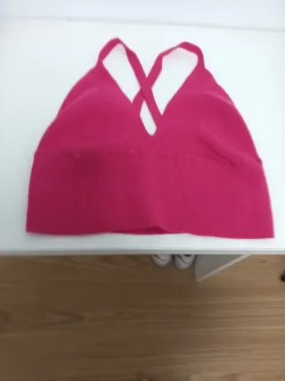 Top de punto en color rosa vibrante, con un diseño moderno y favorecedor. - Tejido elástico y cómodo. - Diseño de tiras cruzadas en el escote. - Acabado acanalado en la parte inferior.