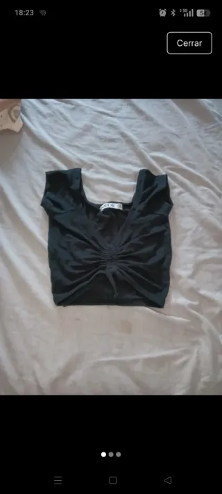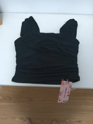 Top de Shein en talla XS. - Diseño fruncido. - Tejido satinado.
