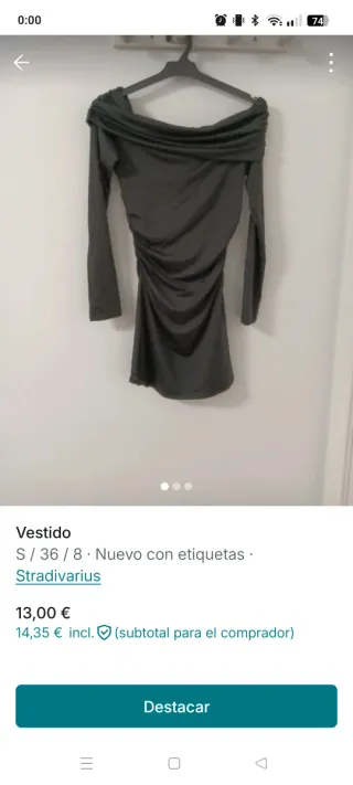 Vestido de Stradivarius con un diseño drapeado y fruncido. - Escote Bardot. - Manga larga. - Tejido satinado.