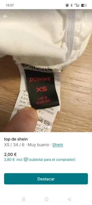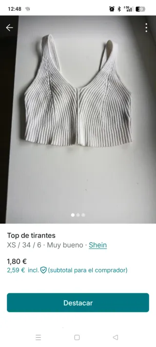 Top Shein blanco talla XS
