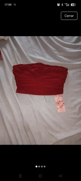Jersey rojo de corte strapless con detalle fruncido en los laterales. Es una prenda cómoda y con un diseño moderno. - Tejido elástico.