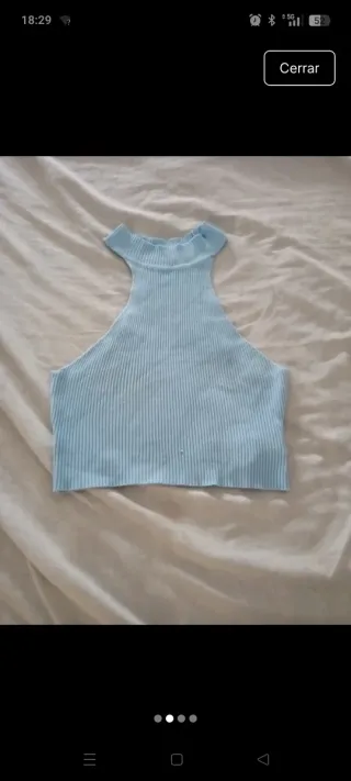Top azul de punto halter