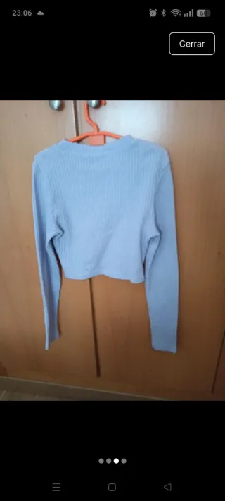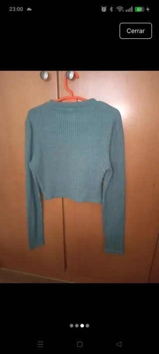 Jersey de manga larga con un diseño moderno. - El jersey es fino - Cuello alto. - Abertura en la zona del escote. - Tejido elástico.