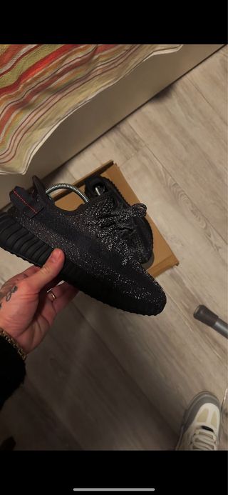 Adidas Yeezy 350 V2 en color negro. - Diseño de tejido Primeknit. - Cordones reflectantes📸 - Suela Boost✅ - Raya lateral característica✔️ - Talla 43👟