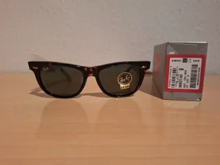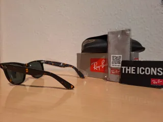 Gafas de sol Ray-Ban modelo Wayfarer con un diseño clásico en carey. La talla es L, con un tamaño de lente de 54 mm. - Montura de acetato con estampado carey. - Lentes de cristal verde. - Incluye estuche y paño de limpieza.