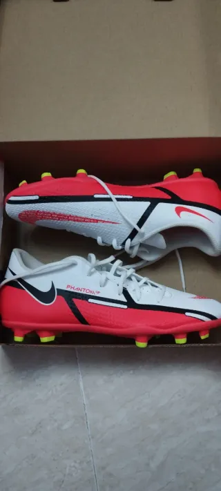 Zapatillas de fútbol Nike Phantom GT2, a estrenar. - Diseño en blanco y rojo. - Tacos para césped.