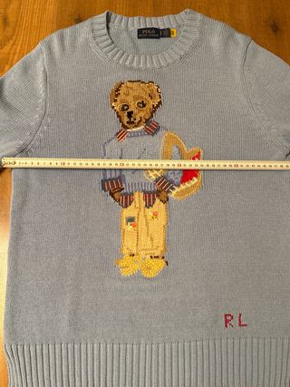 Jersey de punto con diseño de oso de Polo Ralph Lauren. - Estampado de oso con gafas y bolso. - Cuello redondo y manga larga. - Detalle de iniciales 'RL' bordadas en rojo.
