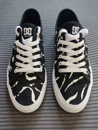 Zapatillas DC Shoes originales, con estampado gráfico único, cordones blancos, suela de goma, unisex. Sin uso en calle, solo probado en casa en varias ocasiones, vendo porque esa talla no se ajusta a mi pie. En la foto se vé su estado tal cual es, en perfecto estado. Precio en tienda de 65€. Talla 42