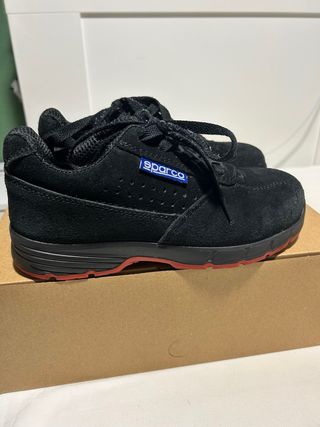 Zapatos de seguridad Sparco, nuevos a estrenar. Combinan un diseño moderno con protección. - Color negro con detalles en rosa. - Suela antideslizante.