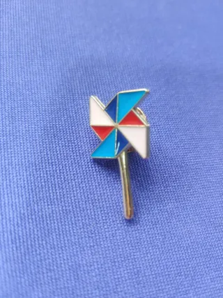 Este pin tiene un diseño de molinillo de viento con un pincho dorado. - Diseño de molinillo de viento. - Pincho dorado.