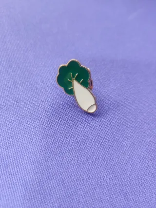 Este pin tiene un diseño de verdura. - Diseño de hoja verde. - Base blanca.