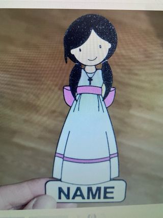 Figura decorativa para comuniones o eventos especiales. - Diseño de muñeco con vestido blanco y flor. - Ideal como detalle o recuerdo.