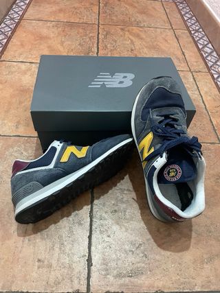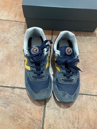 Zapatillas deportivas New Balance con un diseño moderno y llamativo. - Combinación de colores azul y amarillo. - Estilo casual y urbano.