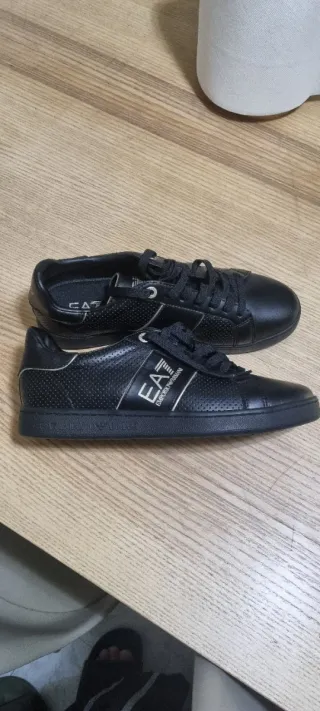 Zapatillas de la marca Emporio Armani en color negro. Presentan un diseño moderno y elegante. Nuevas, sin caja. - Detalle de perforaciones. - Logo de la marca en los laterales. - Cierre con cordones.