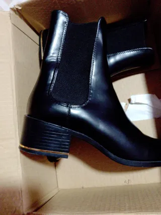 Botines de estilo Chelsea de Zara en color negro. Cuentan con un diseño elegante y moderno. - Material exterior: sintético. - Cierre elástico lateral. - Tacón cuadrado con detalle dorado. - Punta fina.