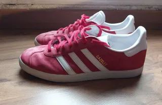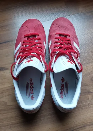 Zapatillas Adidas Gazelle en color rojo y blanco. - Diseño clásico. - Cordones rojos. - Logo de Adidas en la lengüeta y la plantilla. Buen estado, poco uso