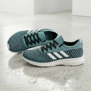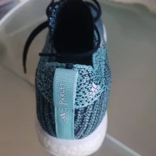 Zapatillas deportivas Adidas Adizero Prime LTD Parley. - Talla algo pequeñas. Pueden valer para un 43. - Diseño en color verde azulado y blanco. - Tejido de malla transpirable. - Tres rayas blancas características de la marca en el lateral. - Cordones negros. - Suela blanca. - La primera foto es un render digital. Las demás, todas del par que se vende.