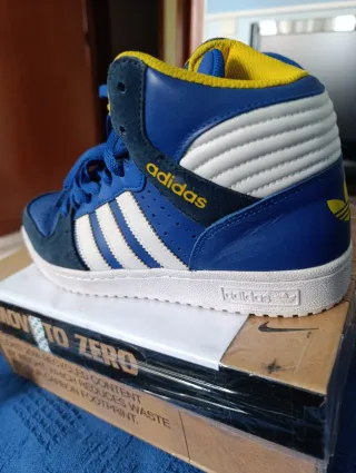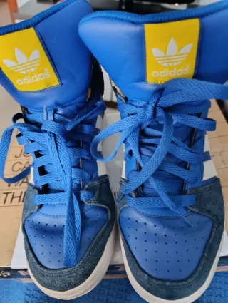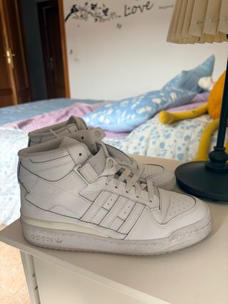 Zapatillas de caña alta Adidas Forum en color blanco, talla 38. Un clásico que combina estilo y comodidad. - Diseño icónico de Adidas. - Cierre con cordones. - Detalle de las tres bandas.