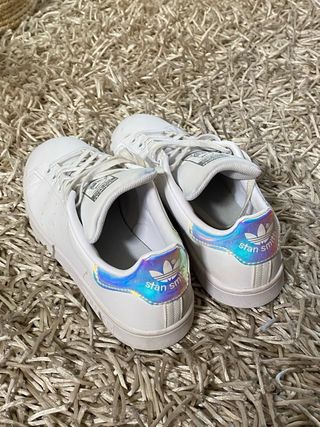 Zapatillas deportivas Adidas Stan Smith en color blanco con detalles multicolor. - Diseño clásico Stan Smith. - Detalle iridiscente en el talón. - Logo de Adidas en la lengüeta y el lateral.