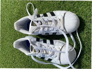 Zapatillas Adidas Superstar originals clasic. Vintage, poco uso, más desgastada de estar guardadas que del uso. Talla 42 2/3. - Diseño icónico de tres rayas de piel. - Puntera de goma. - Cierre con cordones.