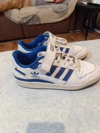 Zapatillas deportivas Adidas Forum. (precio negociable) solo venta en persona - Diseño clásico con detalles en azul. - Cierre de velcro y cordones. - Logo de Adidas en el lateral y la lengüeta.