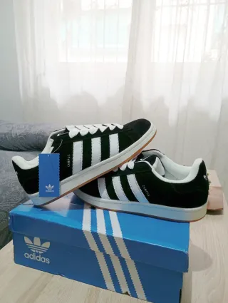 Zapatillas Adidas Campus en color negro con detalles blancos. Un clásico para el día a día. - Diseño de tres rayas icónico. - Etiqueta con el nombre del modelo 'CAMPUS'.