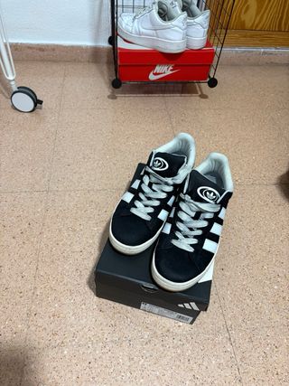 Zapatillas Adidas Campus en color negro con detalles blancos. - Diseño clásico de tres rayas. - Detalle de la palabra CAMPUS en el lateral.