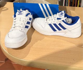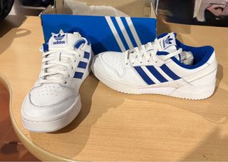 Zapatillas deportivas Adidas Team Court 2 STR. - Diseño clásico en blanco con detalles en azul. - Cierre de cordones. - Suela de goma. Negociable