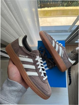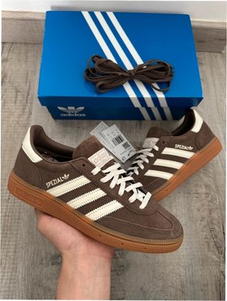 Zapatillas Adidas Handball Spezial en color marrón y talla 39. - Diseño clásico con las tres rayas blancas. - Detalle Spezial en el lateral. - Suela de goma. - Material de ante.