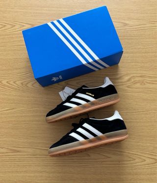Zapatillas Adidas Gazelle en color negro con detalles blancos. Originales Talla 36 2/3 - Diseño clásico. - Suela de goma. - Cordones blancos y negros
