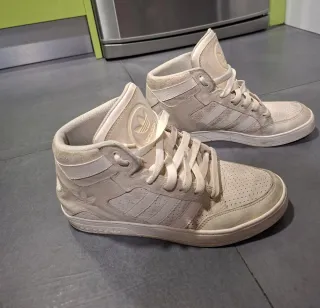 Zapatillas deportivas altas de Adidas en color beige y blanco. Un clásico para tu día a día. - Diseño de caña alta. - Detalles de las tres rayas. - Cierre con cordones.