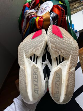 Zapatillas Adidas Adizero Adios Pro 4. - Diseño en blanco y azul. - Detalles rojos en el interior. nuevas valen 250€ estan usadas dos veces
