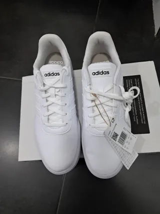 Zapatillas deportivas de piel Adidas Court Tourino en color blanco. -Nuevas sin estrenar - Diseño clásico y versátil. - Detalles perforados en los laterales. - Suela de goma para mayor durabilidad.