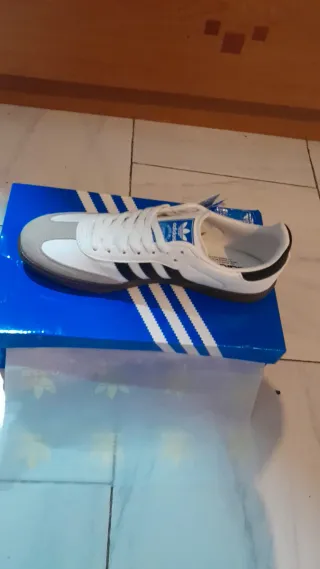 Zapatillas Adidas Samba OG en color blanco. Originales, vienen con su caja. Las vendo porque me equivoqué de talla y ya no las puedo devolver.