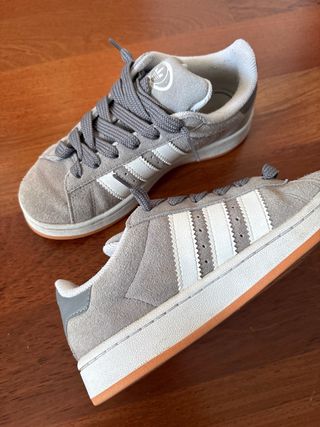 Zapatillas deportivas Adidas Campus en color gris y blanco. Están en perfecto estado y limpias llevan cordones grises para cambiar las vendo porque le quedan grandes de talla