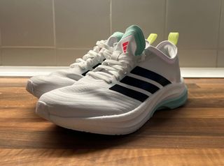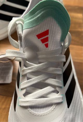 Zapatillas deportivas Adidas Move Boost en blanco con detalles en teal. - Diseño moderno y ligero. - Tres rayas laterales en negro. - Suela con amortiguación. - Tirador trasero para facilitar el calce.