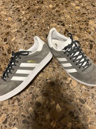 Vendo un par de zapatillas Adidas Gazelle talla 42.5. Son de color negro y blanco, y están en buen estado. - Ideales para un look casual. - Cómodas y estilosas.