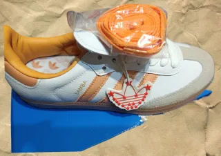 Oferta Navidad!!! Zapatillas Adidas Samba preciosas . - Combinación de colores naranja y gris claro. - Detalle de las tres franjas. - Logo de Adidas en la lengüeta y el talón. - Incluye cordones naranjas adicionales.