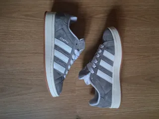 Zapatillas Adidas Campus en color gris y blanco, talla 37. Nuevas sin estrenar. - Diseño clásico de Adidas. - Detalle de las tres rayas blancas. - Inscripción CAMPUS en el lateral.