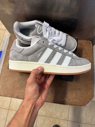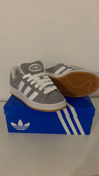 Zapatillas Adidas Campus 00s en color gris y blanco. Un diseño clásico y versátil. - Parte superior de ante. - Detalle de las tres rayas en los laterales. - Suela de goma. - Cierre con cordones blancos. -sin estrenar