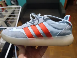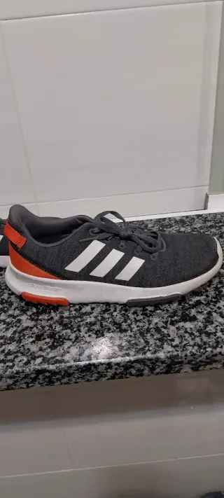 ( Sólo usadas un día ) Zapatillas deportivas Adidas con un diseño moderno. - Combinación de colores gris y naranja. - Detalle de las tres rayas características de la marca.