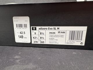 Zapatillas Adidas adizero evo sl con SOLO 5KM talla 42 2/3 - Diseño deportivo. - Detalles de las tres rayas. - Suela con tecnología Lightstrike Pro.
