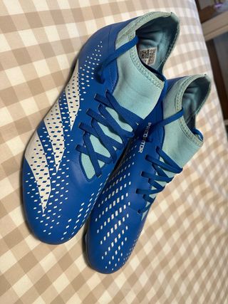 Zapatillas deportivas Adidas Predator Accuracy 4 en color azul. - Talla 45 1/3 - Diseño con detalles blancos. - Cierre de cordones. - Cuello elástico para un ajuste cómodo. Se venden por dejar el futbol. Tienen 1 partido de uso en condiciones perfectas. Compradas en tienda oficial Adidas.