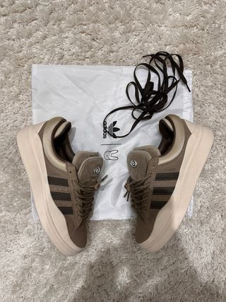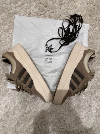 Zapatillas de la marca Adidas bad bunny en tonos beige y marrón. - Diseño moderno y versátil de bad bunny. - Cordones marrones a juego. - Suela gruesa y cómoda. - Solo un uso y sin caja
