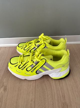 Zapatillas deportivas Adidas Energy Boost, edición del 5º aniversario. - Diseño en color verde brillante. - Cierre con cordones negros. - Detalles de las tres bandas Adidas en negro. - Usadas muy pocas veces. - En perfecto estado. - Edición aniversario.