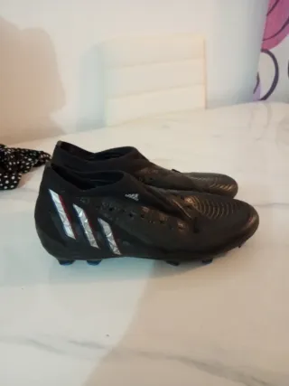 Zapatillas de tacos Adidas en llamativo color rojo con detalles en negro. Perfectas para la práctica deportiva. - Diseño deportivo. - Cierre con cordones. Son el número 35, pero tallan pequeñas. Más recomendado para 34.