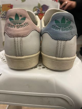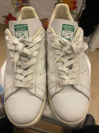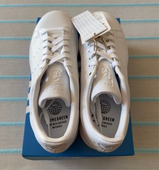 Zapatillas icónicas Adidas Stan Smith en color blanco con detalles verdes. - Diseño clásico y atemporal. - Cierre con cordones. - Logo de Stan Smith en la lengüeta.