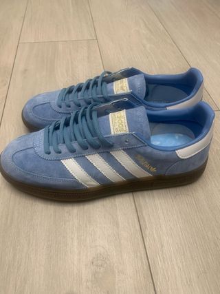 Zapatillas Adidas Spezial en color azul marino con detalles en azul claro y suela marrón. Talla 45'5, como nuevas, solo se ha usado 1 vez.